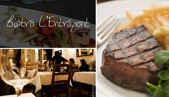 Ouvert depuis 1985, l’Entrepont s’est déjà forgé une forte réputation sur le marché de la restauration.  Avec un menu raffiné et diversifié qui rappelle parfaitement bien la France, la clientèle fidèle y retourne jour après jour pour déguster des mets succulents.  Commencez votre repas par une entrée d’escargots avec une sauce au bleu, ou encore un croûton de chèvre sur nid de verdure.  Bien entendu, le foie gras est au menu sous la forme d’une crème brûlée accompagnée d’une réduction à l’érable: un clin d’œil à la gastronomie québécoise!   Par la suite, l’Entrepont vous propose le solo de canard, qui est un magret de canard cuit parfaitement pour plaire à tous; ou encore, le carré d’agneau aux fines herbes.  Carnivores seront servis par le bison de l’Alberta avec une réduction de porto, ou encore la très spéciale longe de kangourou.  Le chef vous propose également un menu de saison avec des produits frais et du jour, qui sont affichés sur l’ardoise du restaurant.  Une cuisine du marché concocté par le nouveau chef, Michaël Bouchard, pour plaire à une clientèle exigeante qui aime la bonne bouffe!