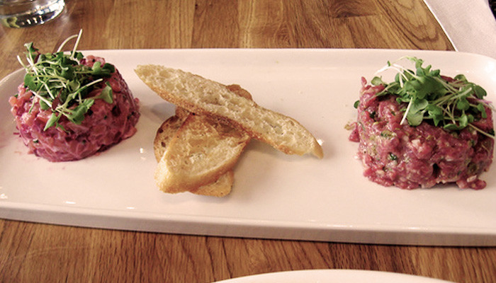 • 2e service - Vos choix parmi: Tartare de bœuf au cognac / Tartare de saumon aux pacanes fumées / Poutine d'haricots verts et oignons caramélisés